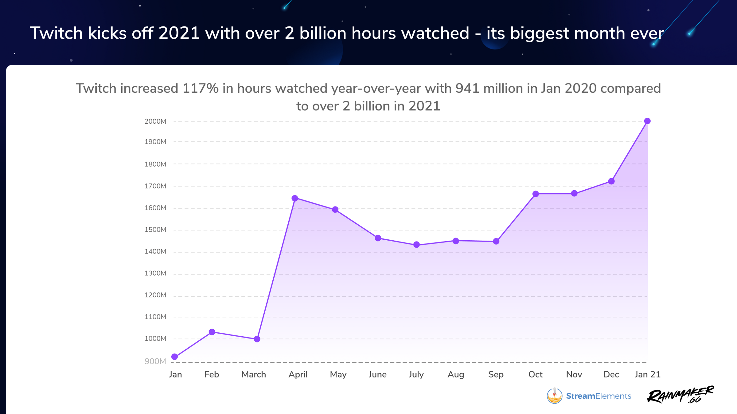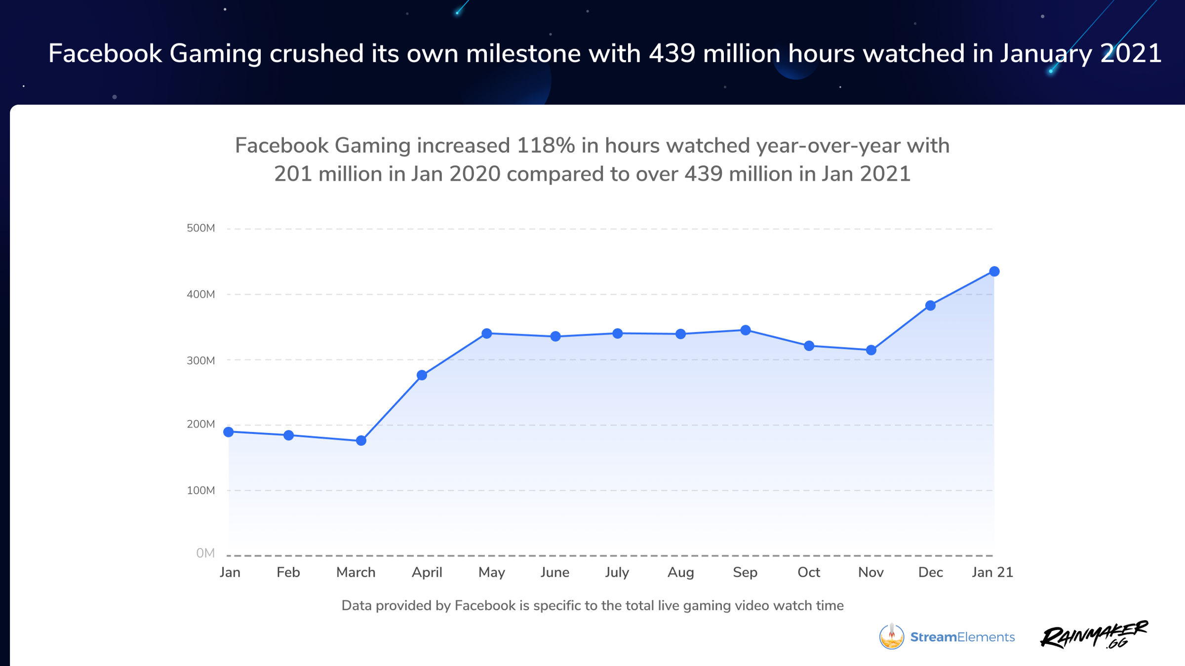 Twitch et Facebook Gaming, deux concurrents dans le monde du livestream, ont connu une croissance importante pendant l’année 2020. Selon une étude comparative de StreamElements et Rainmaker.gg, Twitch et Facebook Gaming ont enregistré des records d’audience depuis un an, jusqu’au mois de janvier 2021. Sur les graphiques présentés, on voit très clairement que janvier 2021 a été le meilleur mois comparé à l’année passée pour les deux plateformes. En réalité Twitch et Facebook Gaming ont enregistré plus du double de leur audience entre janvier 2020 et janvier 2021.